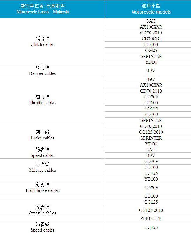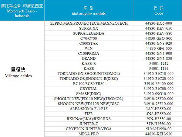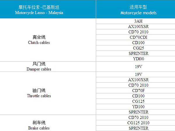 摩托車?yán)?巴基斯坦適用車型表![]() 點(diǎn)擊查看大圖 |