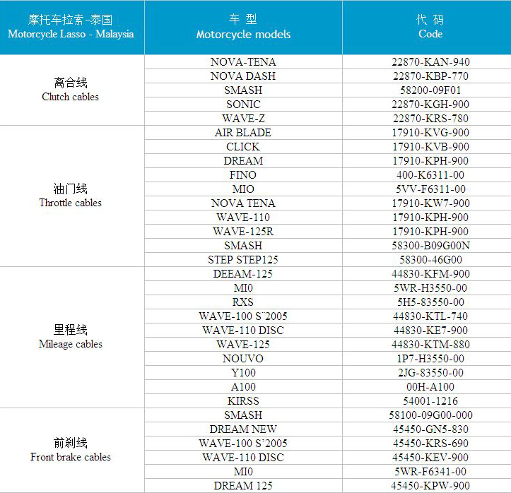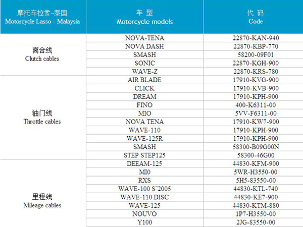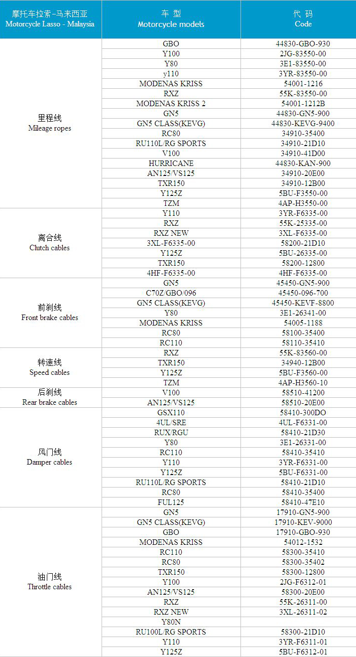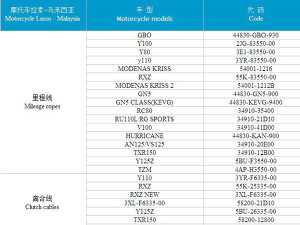 摩托車?yán)?馬來(lái)西亞適用車型表