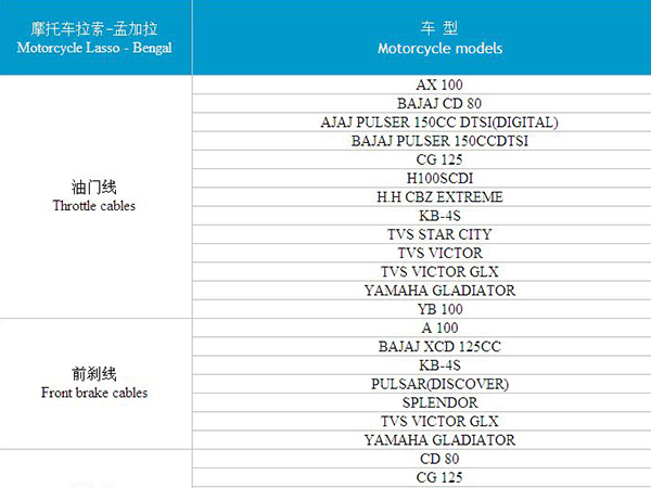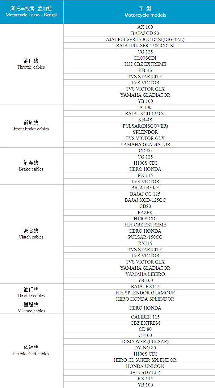 摩托車?yán)?孟加拉適用車型表![]() 點(diǎn)擊查看大圖 |
